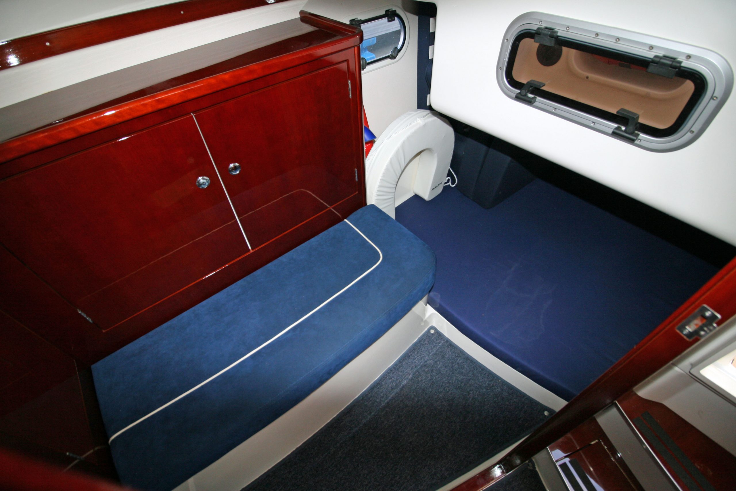 Båten har en ypperlig planlösning med stora sociala ytor. I aktern finns en U-formad soffa som enkelt kan göras om till en solbädd för soliga sommardagar, eller sovplats för 1?2 personer. Inomhus finns sovplatser för ytterligare 4 personer fördelat i förpiken och i den större kabinen med egen dörr för avskildhet. Här finns även ett separat badrum med WC och dusch. Ute i sittbrunnen finns ytterligare en dusch på akterdäck samt pentry utrustat med spishäll med två plattor (diesel), kylskåp, diskho med varm- och kallvatten (färskvatten), gott om avställningsytor, förvaringsutrymmen och lådor. Ytterligare förvaringsställen där packning och specier kan stuvas undan finns det gott om på hela båten. Ombord finns även värme med utblås i alla utrymmen som driver bort både kyla och fukt.