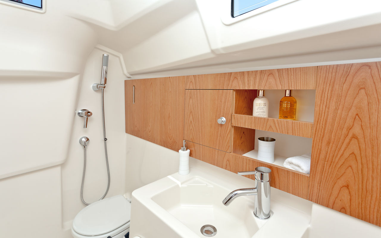 - Shower with hot water in the cockpit