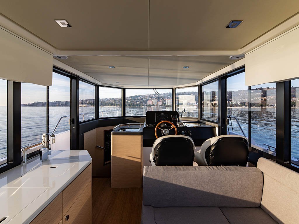 The spaces and volume in this boat are unparalleled among boats of the same size. The boat has a semi-planing hull, which provides good operating economy. The salon is spacious and opens up completely to the aft deck. Most unique about this 34-footer, however, is that it has 3 cabins! with 6 real beds. It provides plenty of space for the whole family.